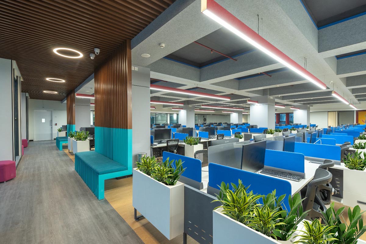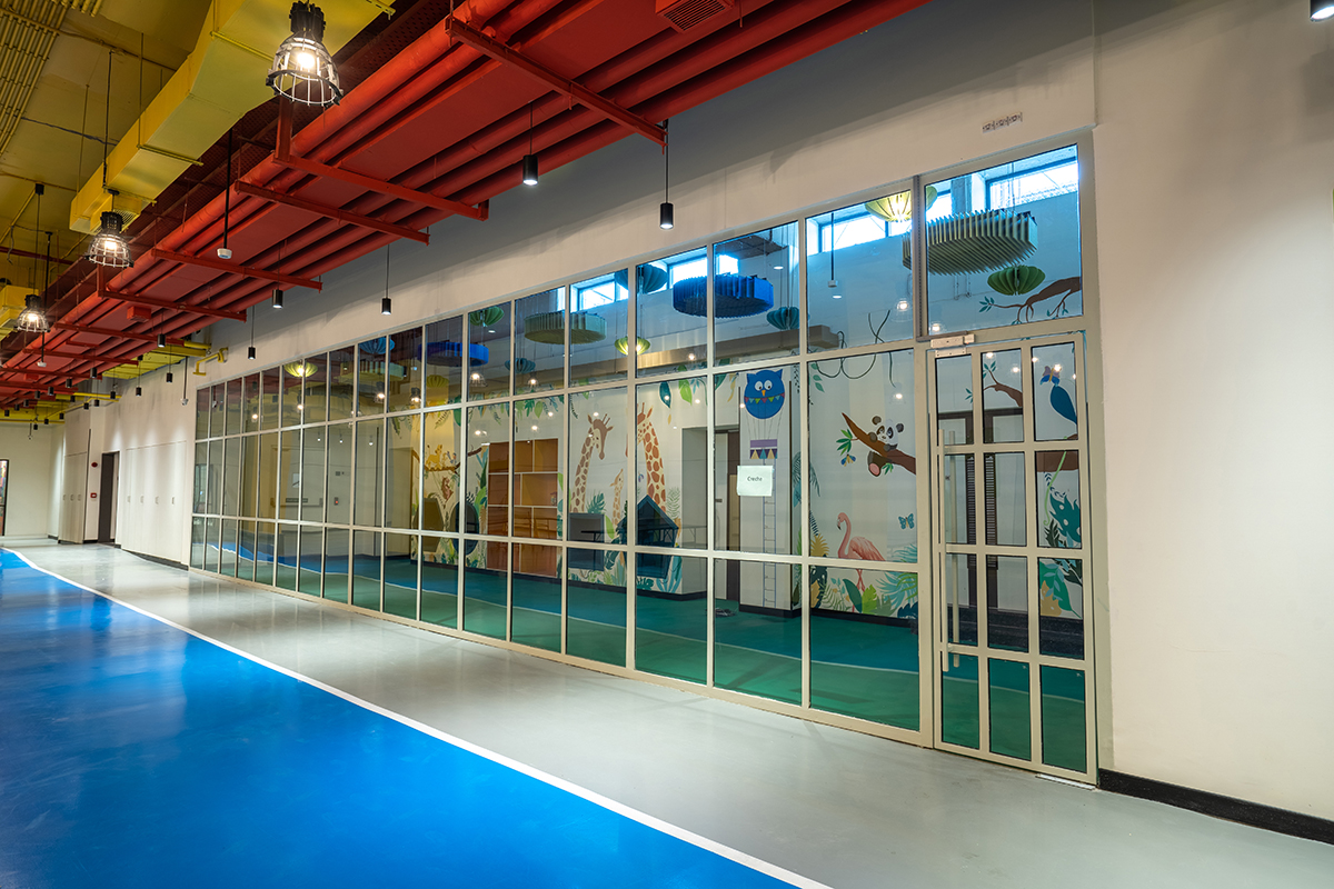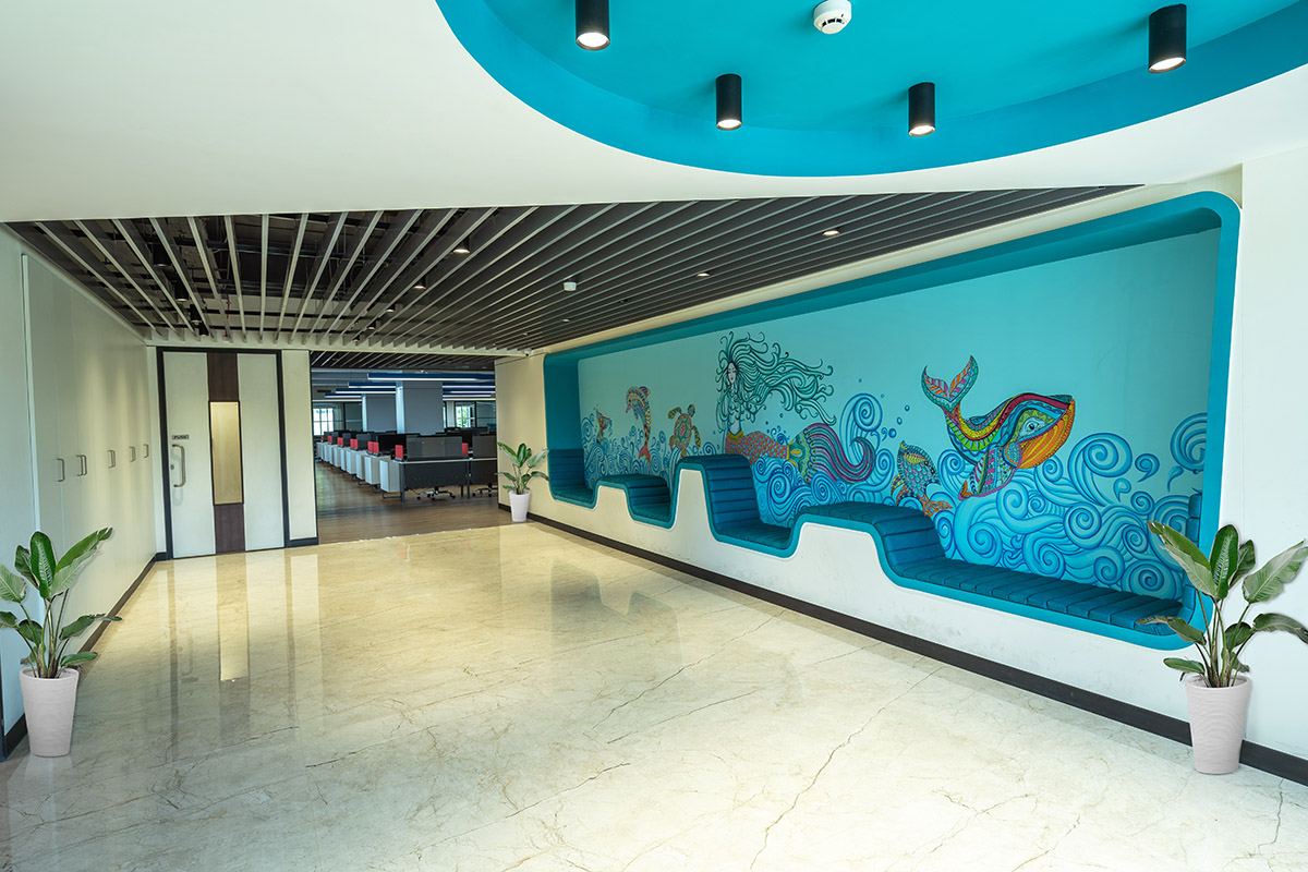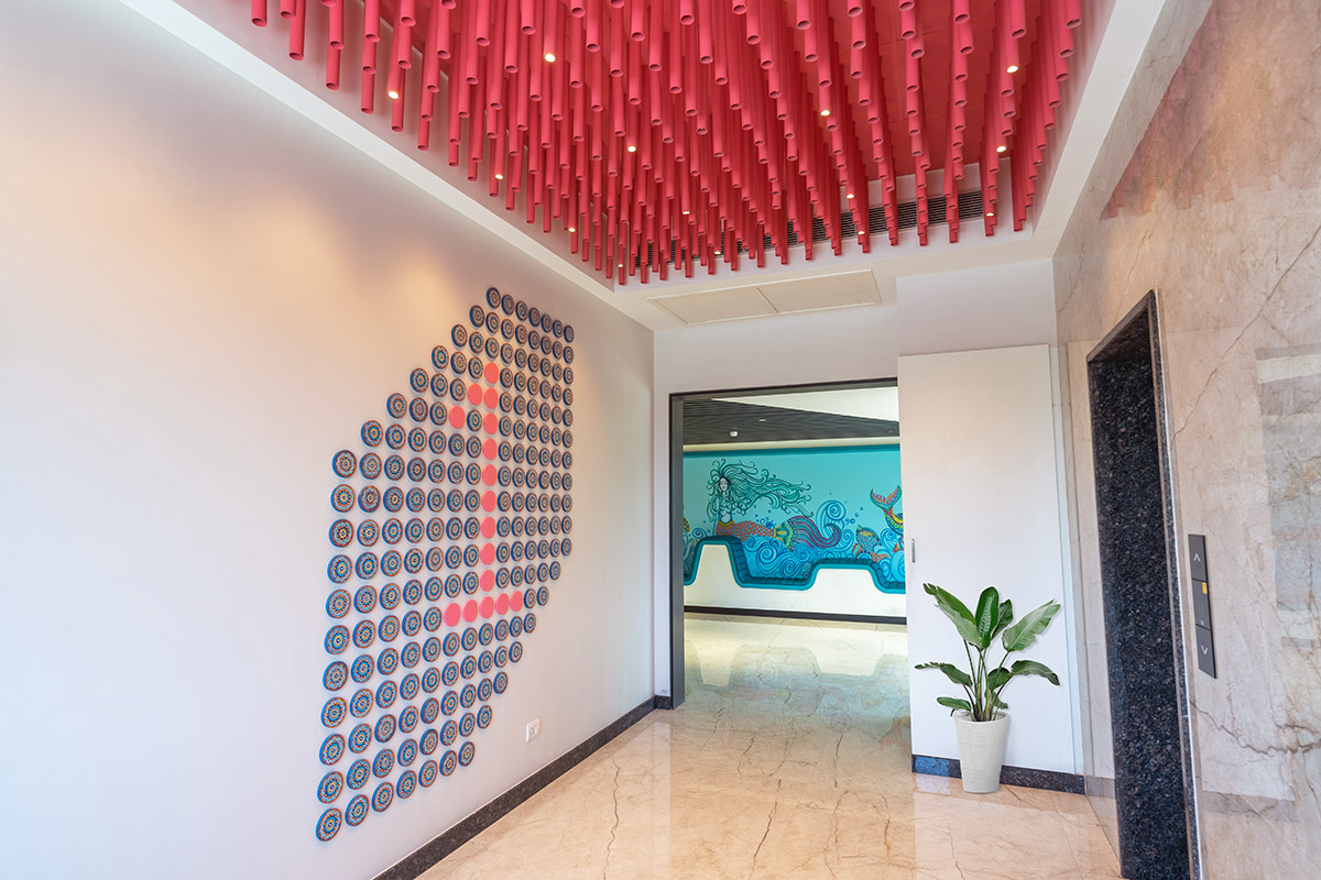 • The discs, marking the floor number, are made using local art forms.